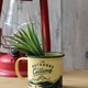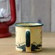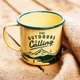 本商品是户外系列的珐琅杯之一,杯身透过黄色与绿色的搭配勾勒出一幅美丽的图案,在杯子正反面都有山的图腾,不同的是,一面是一个人沿着山路在登山,另一面是有人在山中湖垂钓,十分有趣!