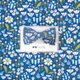 在沉稳的蓝色基调上,描绘着淡粉色与浅蓝色的花朵。