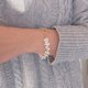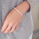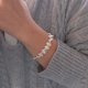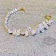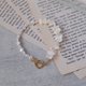 - An asymmetrical and fashionable pearl bracelet using two types of freshwater pearls. This is in contrast to the stick type and flat round shape, but the soft luster and shade of freshwater pearls make it shine casually at hand.