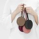- 真皮圆形零钱包,轻巧有形可收纳零钱及小物, 附有手提袋可与包包搭配使用。