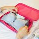 【压缩50%体积】单层独立空间,将衣服放入压缩包,关上拉链即可压缩约50%衣服体积。