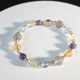 ▸**这款手链选用的黄水晶,商业名称是“黄塔山水晶”,有些黄色分布,呈现类似金字塔的形状,因此带有“聚财”的民俗寓意。真正的黄水晶非常稀有,且色泽实际是比较黯淡的黄色,市面上很大部分的黄水晶,是“紫水晶”加热处理而成,由于加热后的颜色是永久的,这样的工法很常见,在此说明**