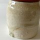 这是一个简单的容器,具有干净的圆柱形形状和白色背景上流动的薄釉。