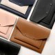 信封式开阖造型设计,简约的金属扣将皮革阖盖固定住。