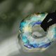 On the frozen ground, the circle of ice that reflects light and shines beautifully. Random ice rock cut was applied to the whole surface of the top of the ring shape, and the inside was subjected to dichroic polarizing glass and lame which change to various expressions depending on the viewing angle and how the light hits. Emits a mysterious beauty like a jewel, finished in one original glass pendant in the world.