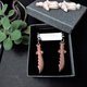 这对可爱桃木剑木刻925纯银镀白金耳环具扩香功能,利用木材天然毛孔吸收精油,以环保方式扩香. 香味散尽后,可再加精油延续香味, 或转换精油改变香味。
