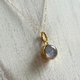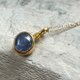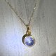 采用了K24纯金(底部为K22)镶嵌一颗带有六射星芒的星光蓝宝石(Sapphire)制成的坠饰。蓝宝石硬度高,适合日常配戴。