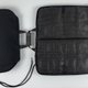 可调式腰靠垫正面:透气黑色三明治网布贴合超软高密度泡绵,车V字形立体造型线。