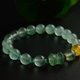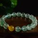 手围最大可18,请留言需要手围。9mm+的莹润绿萤石圆珠为主体,其色调为清雅的偏蓝调绿色,晶体较透,内部可见如濛雾般的拉丝纹理。搭配一枚的绿萤石“双头并蒂莲”,一颗天然金绞蜜琥珀珠与璀璨的奥地利水晶切面小算盘珠,寓意深远,设计层次丰富。萤石与琥珀的结合,在传统认知中被认为有助于安抚情绪与凝聚心神。整条手串兼顾了自然韵味与精致细节,是一款别致且富有寓意的腕间饰品。
