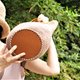 原木扣子加上了麻绳编织中再加入了黄色三角纹路