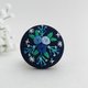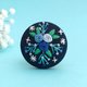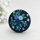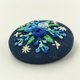 在藏青色的布料上,运用三种蓝色绣线,绣出了色彩鲜艳的花束。