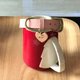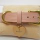 粉红色水波纹纯牛皮双层制作,纯黄铜带扣D型环,金色压花固定扣