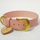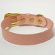 使用永不退流行的 Baby Pink 牛皮双面对黏不但让正反质感一致更让项圈更加耐用与挺拔,加上搭配高档的上釉纯黄铜五金,营造出简约的造型却能展现出您毛小孩最高雅的气质!