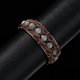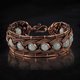 手链采用纯铜线和天然玉髓制成。铜经过人工老化,形成了古色古香的外观,使手镯的细节更加富有表现力。经过古铜色处理后,手镯被抛光至闪亮,赋予手镯美丽的美学外观。手镯上涂有保护性清漆,以防止变暗。