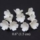 White flower beads 0.6 "(1.5 cm) made from polymer clay. Each flower is made by me in the hand with a small tools. This set has 5 beads in it, but you can choose other quantity flowers. The hole orientation hole in the center of the flower. If necessary, a hole can be fixed with a needle.