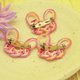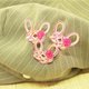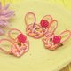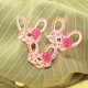 由3条粉红色线制成的兔子。 兔耳有一朵红色的花。 因为它使用波光粼粼的螺纹,所以有点华丽。