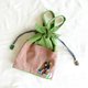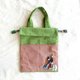 { 农家乐 } 系列作品之一的束口手提袋,外有四个口袋,一些需要立即拿出的物品放在这里,顺手一抽即可拿出 ! 里层尚有一个小口袋。抽绳尾端缝了一小颗刺绣部剩余的尾料,让你拎着走的时候更方便顺手,同时也尽量不浪费物尽其用 !