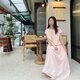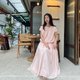 粉色圆领上衣
