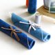 棱形状餐具套,先由上角往下折(缺一角),再由左至右折一角,由左边往右边卷起,最后系起绑带即完成。