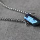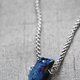 使用天然矿石原石,表面电镀蓝色,配以不锈钢项链。