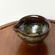 这只茶海披覆着迷人的茶叶末釉色,沉沉的黑褐色为底,洒落其上的是绿色结晶斑点,犹如夜空中闪烁的繁星,展现高温窑变的独特魅力。