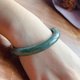 - 【名称】飘花翡翠手镯 【尺寸】18围内径56mm宽9.2mm厚7.8mm 【产地】缅甸 【颜色】绿 【备注】天然缅甸翡翠A货 【编号】20221109-12EL