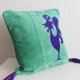 It is cheerful cushion, such as illustrations vivid blue of birds they were very good shines in green.