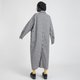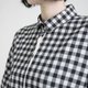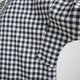 - 宽松版型、棉质黑白格纹布料、暗门襟设计、澎澎袖设计、后下摆排扣设计、两侧具备口袋。