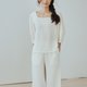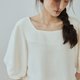 露出锁骨 拉长颈部线条分割的羊腿袖设计