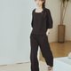 夏天人手一条黑色褶皱休闲长裤利落宽松的直筒裤型 松紧腰的腰头 不限腰围 穿脱舒适 加了侧口袋