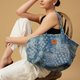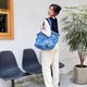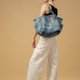 耐用且休闲的丹宁布(BCI 棉)采用扎染印花工艺,透过去除颜色而非叠加,使织物保持自然柔软且富有弹性,同时保留丹宁织纹的纹理 / 同色系丹宁提把 / 真皮品牌标志贴饰。