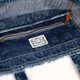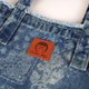 水洗浅丹宁搭配白色印花,咖啡色皮革品牌标志贴饰