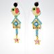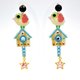 刺绣立体眼晴小鸟屋子耳环 Swarovski 水晶装饰