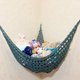 A handmade knitted toy hammock can easily be placed in any corner of the children's room by filling it with the child's toys, in your bedroom by putting your most sentimental children's things into it, become a decorative element in your living room and even in the bathroom by laying towels in the hammock, it is attached with hooks. You can hang your hammock in the upper corner of the wall or closer to the floor so that your baby can reach his favorite toys. The hammock perfectly saves space, it will easily fit all the toys in the room. Moreover, collecting them can be turned into an exciting game, teaching the child to order. The hammock is also suitable for storing any things that do not have a place in the room or closet.