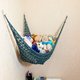 The hammock, suitable for everyone, stretches under the weight of your toys and looks great.