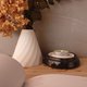 烛台的外型如优雅山景,遮罩材质为陶瓷,点亮蜡烛时莹莹透光。内部有承载精油的陶瓷座,透过陶瓷的导热及气孔,将香氛扩散至整个空间。