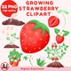 - 剪贴画:草莓生长有种子、幼苗、成熟的树木和水果,可用于装饰、工作表、衬衫设计和标志。