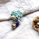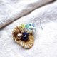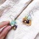 耳环上叮叮咚咚的装饰,分别是来自阿卡族 (Akha) 的古铜铃、跟克伦族 (Karen 台湾多称作长颈族) 阿姨买的米壳珠,还有老琉璃珠等。以泰国多种民族的素材融合在作品中