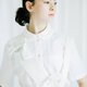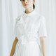 - 这是一件娃娃领衬衫,领子拼有欧根纱作装饰,衫脚有扇形边沿设计 。