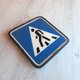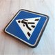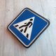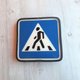 - Crosswalk street traffic sign vintage. Black blue white road sign. Made in USSR.