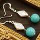 菱形状的天然淡水珍珠,特别的珍珠光泽让人爱不释手,跟蓝绿色的天河石搭配充满春天的气息。