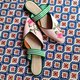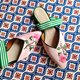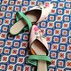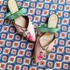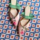 很难想象传统丝绸绣花鞋和现代的绿色条纹橡筋会产生多大的视觉差异,但就在这有趣的不同和差异中,粉橡筋平底鞋找到了一种属于它的平衡和美。