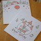一张活版印刷卡片、一张白色方形信封、一张小怪兽封口贴纸。