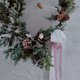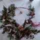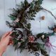 【课程内容】:教导同学如何用永生雪松绑一个半月型花圈,再加上果实及干燥花材加以装饰,最后完成自然风花圈