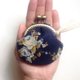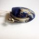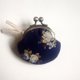 表布 深蓝玫瑰图样、里布 黄白线条、口金 古铜、蕾丝缎带随机。
