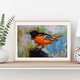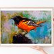 - Title "Baltimore Oriole Painting". Size 20x30 cm 8 by 12 inches. Original bird painting - painted on canvas. Materials: oil paints, canvas board, palette knife. Frame is not included. The picture is not framed!
