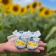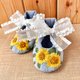 - Cute baby shoes with sunflower embroidery on light blue organic cotton Linen. Under the blue sky, I imagined "sunflowers blooming toward the sun" and stuck them in baby shoes.