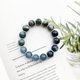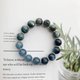 其优质泛蓝、闪亮的蓝晶石,搭配柔和、半透明的蓝玉髓或月光石,整体呈现出紫蓝色彩不同的层次,并能突显蓝晶石的闪亮星光,像天空泛着蓝色烟花闪烁一般;且其能量的配合可发挥更强大的效能。