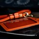橘色直式证件套,手工缝制,精细做工与边缘打磨,使用材料为意大利植鞣革协会认证之顶级透染植鞣革Buttero。