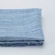 此款布料的直线部分使用了蓝白两色、横线则全数使用白线织成,因此看起来为浅蓝色、如同使用了刷毛所制成的图样。整体造型清爽,不论是什么季节的衣物都十分适合使用绀絣。
